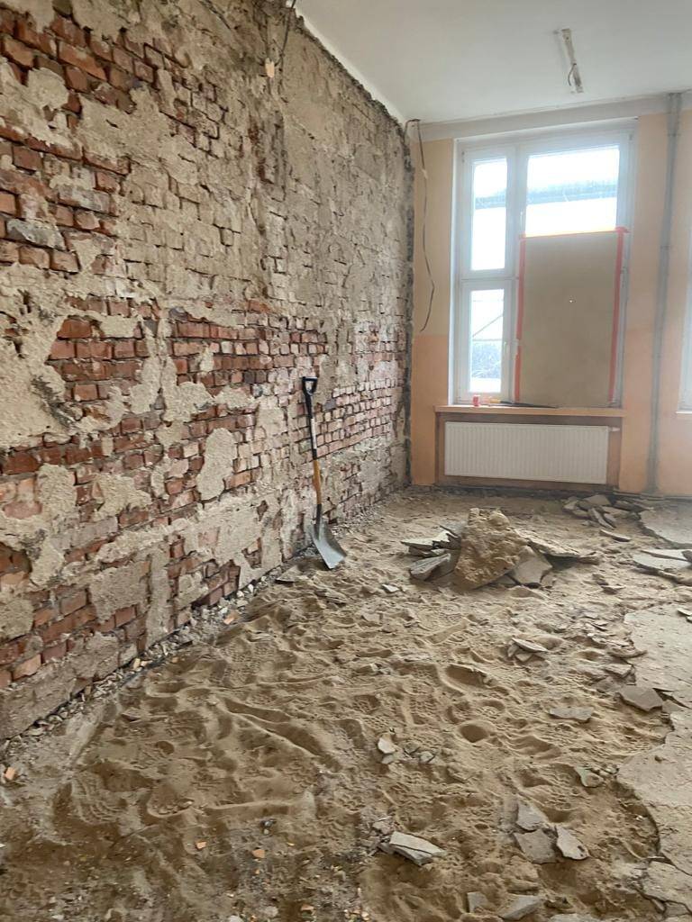 Jak informuje Zarząd TAURON Wydobycie S.A, na terenie Szkoły Podstawowej nr 20 w Byczynie generalny wykonawca remontu - firma MODULAR Sp. z o.o., kontynuuje rozpoczęte w ubiegłym roku prace. Aktualnie demontowane są parkiety, stolarka drzwiowa oraz trwają przygotowania do ułożenia nowej instalacji elektrycznej.