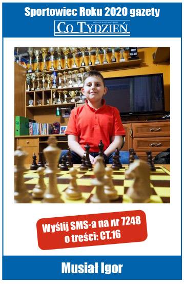 Musiał Igor (Szachy – MCKiS Jaworzno) – Złoto na Szkolnych Indywidualnych Mistrzostwach Polski.