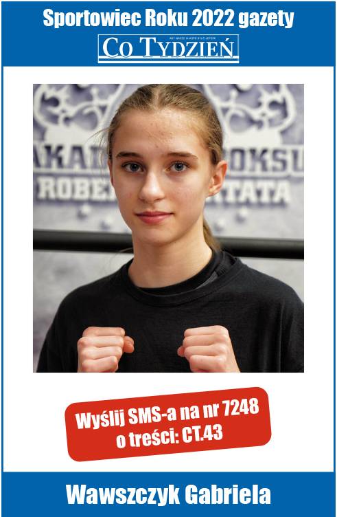 CT.43 Wawszczyk Gabriela (boks) – Mistrzyni Polski, brązowa medalistka Mistrzostw Europy, I miejsce w Pucharze Polski (Akademia Boksu Roberta Gortata).