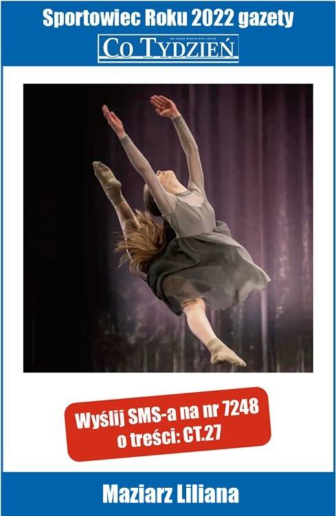 CT.27 Maziarz Liliana (taniec akrobatyczny) – Mistrzostwo Europy Contemporary Ballet Solo Juveniles II, III miejsce na MŚ Contemporary Ballet Solo Juveniles II (Akademia Tańca Elite).