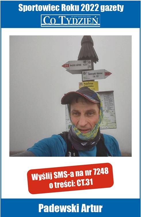 CT.31 Padewski Artur (biegacz ultra) – pokonał Główny Szlak Beskidzki poniżej 100 godz. Podium w Biegu Pogórza.