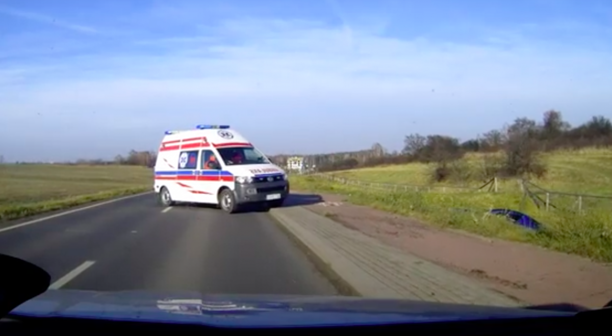 Film ze zdarzenia drogowego zarejestrowany w Jaworznie robi furorę w internecie. Na miejscu zdarzenia drogowego po kilku sekundach pojawiła się karetka.