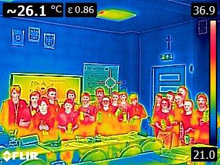 Kolejnym punktem zajęć był pokaz z kamerą termowizyjną, dzięki której uczniowie dowiedzieli się, jak wykrywać miejsca ucieczki ciepła w budynkach i jak dbać o ich lepszą izolację.