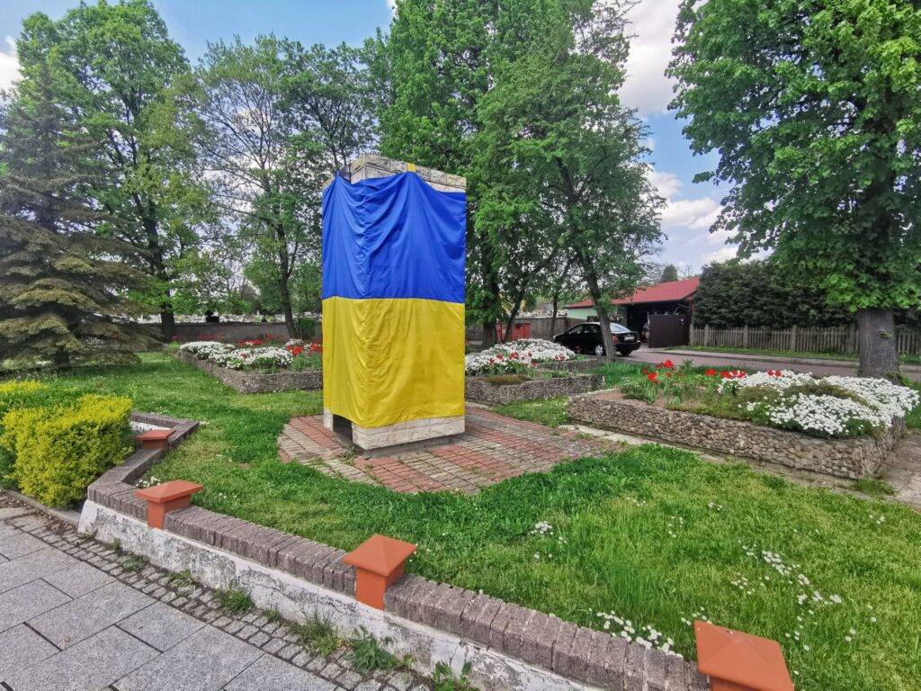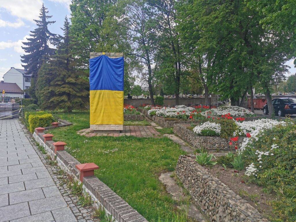Grupa przyjaciół z Jaworzna,  jak potwierdziła, postanowiła we własnym zakresie uszyć ogromną Ukraińską flagę, aby okryć w tym szczególnym dniu,pomnik upamiętniający Rosyjskich zbrodniarzy.