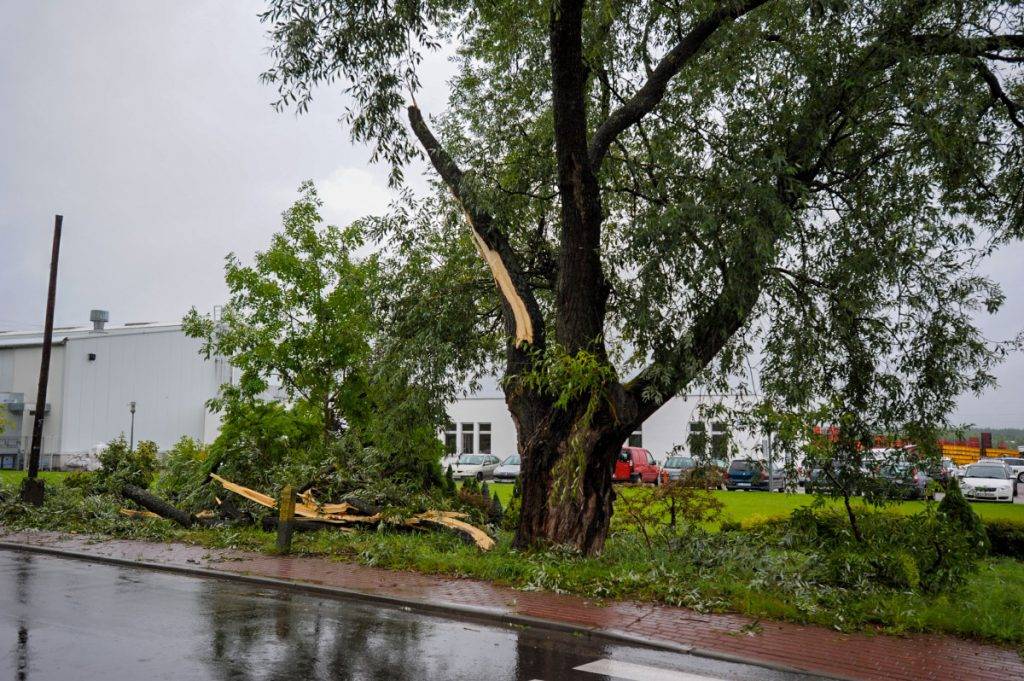 Mimo że od burzy minęło już wiele godzin, to od samego rana strażacy nadal pracują. Dzisiaj w Jeleniu przycinali połamane drzewa, które mogłyby zagrażać bezpieczeństwu mieszkańców. Do strażaków cały czas napływają informacje o połamanych drzewach, ciężko więc określić jak długo potrwają jeszcze prace porządkowe.