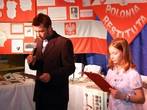 Zebranych przywitały dźwięki chopinowskich polonezów, mazurków i nokturnów, jako że rok, w którym obchodzimy dwusetną rocznicę urodzin tego wielkiego Polaka, został ogłoszony rokiem jemu poświęconym. Muzyka Fryderyka Chopina, poety fortepianu otuchy i pomagała przetrwać w trudnych czasach całym pokoleniom patriotów, którzy walczyli o upragnioną wolność.
