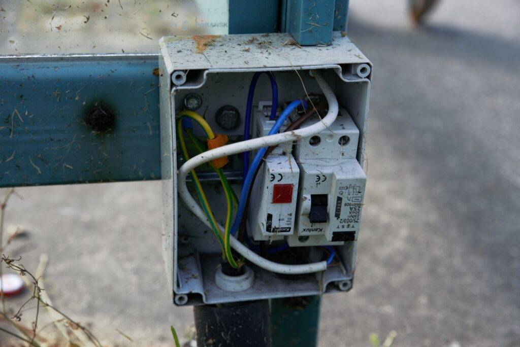 Niezabezpieczone elementy instalacji elektrycznej na przystanku autobusowym