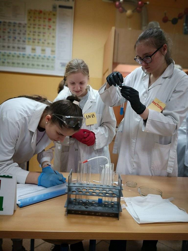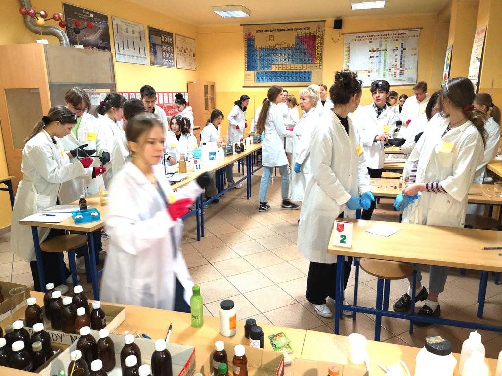 Bardzo dobrze wyposażona pracownia chemiczna w szkole dała możliwość przeprowadzania różnorodnych doświadczeń, takich jak: miareczkowanie, badanie związków amfoterycznych, otrzymywanie gazów, wykrywanie wiązań charakterystycznych dla związków organicznych, tworzenie roztworu o określonym stężeniu molowym i procentowym oraz wiele innych. A nic nie wprawia w lepszy nastrój nauczyciela - chemika jak zmniejszająca się ilość odczynników wykorzystana podczas doświadczeń.