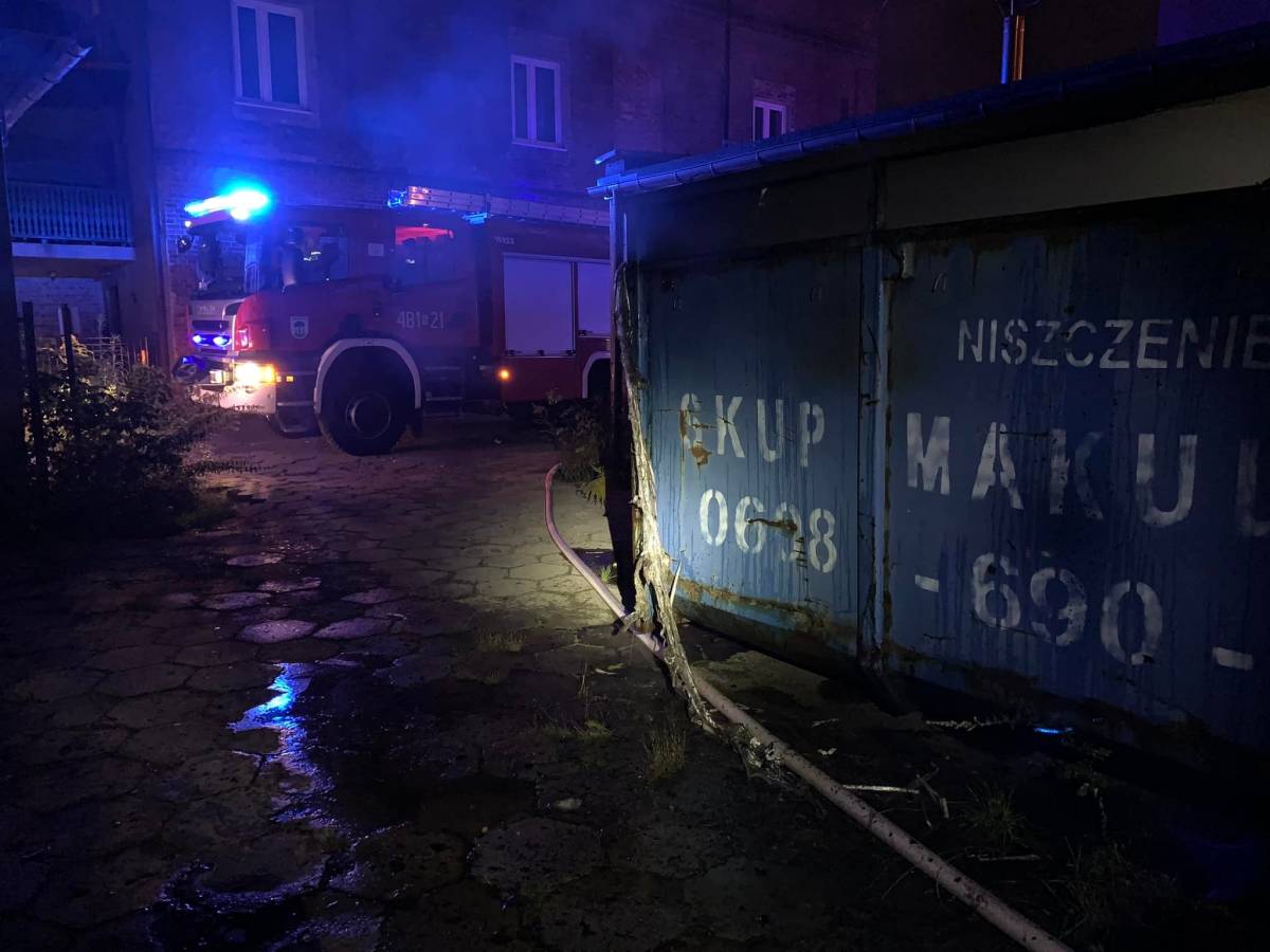 Nocny pożar przy ul. Jagiellońskiej w Jaworznie. Palił się wypełniony makulaturą kontener.