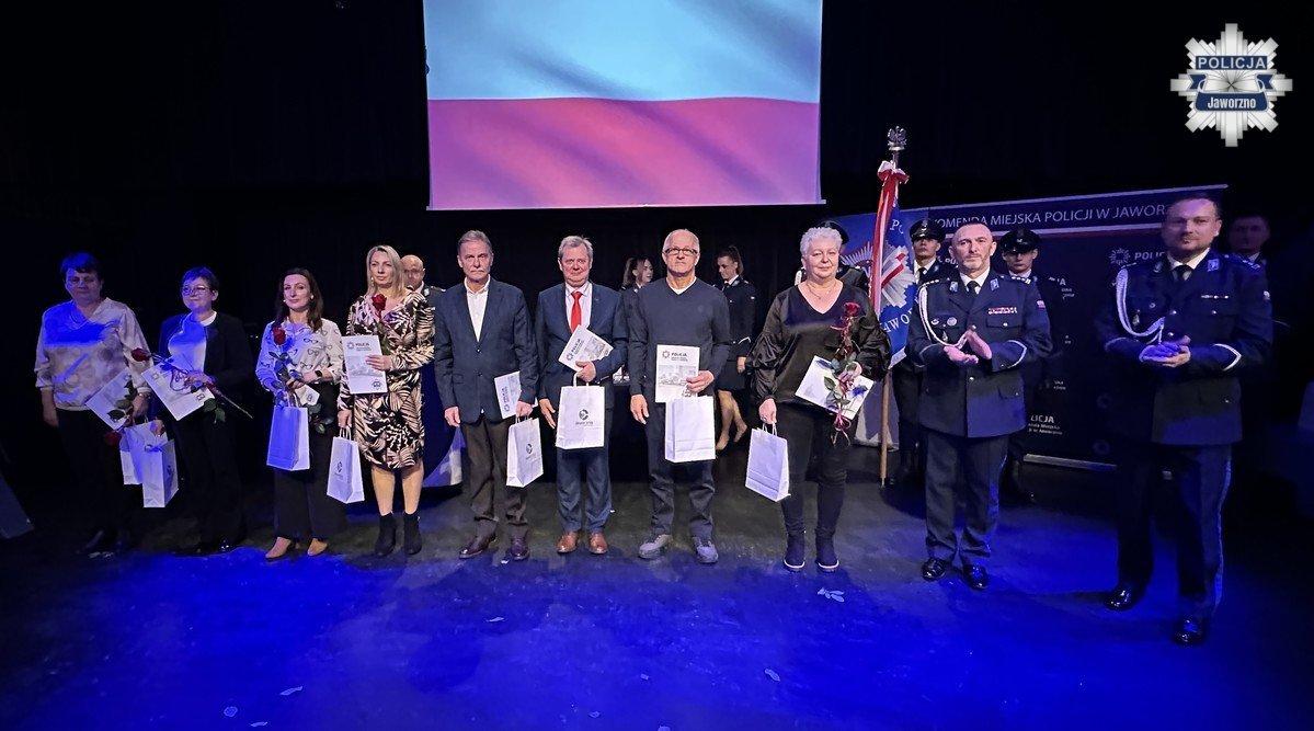 Jaworzniccy policjanci, pracownicy cywilni komendy, strażacy, strażnicy miejscy oraz osoby współpracujące ze służbami zostali uhonorowani za swoją prace i zasługi podczas uroczystej zbiórki z okazji Święta Niepodległości zorganizowanej przez Komendę Miejską Policji w Jaworznie. Uroczystość odbyła się w poniedziałek, 24 listopada w ATElier Kultury.
