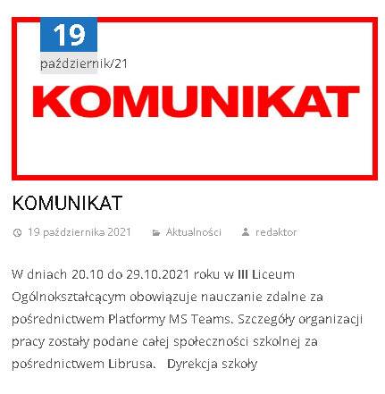 [caption id="attachment_233884" align="alignnone" width="431"] Komunikat ze strony internetowej LO3[/caption]