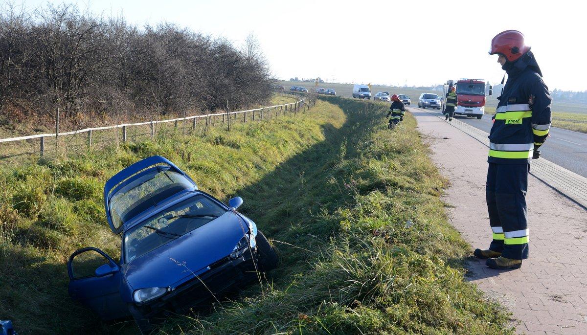 Kierowca nie zapanował nad samochodem, który wypadł z drogi i po dachowaniu znalazł się w rowie. Mężczyzna był w samochodzie sam. Został odwieziony do szpitala na obserwację. Jego życiu nie zagraża niebezpieczeństwo.
