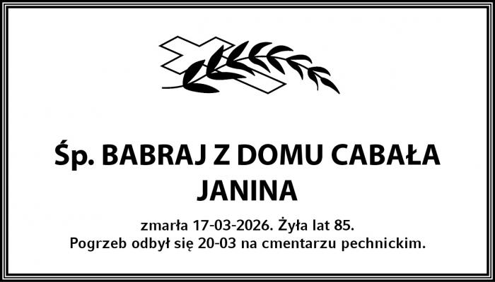 zmarła 17-03-2026. Żyła lat 85.