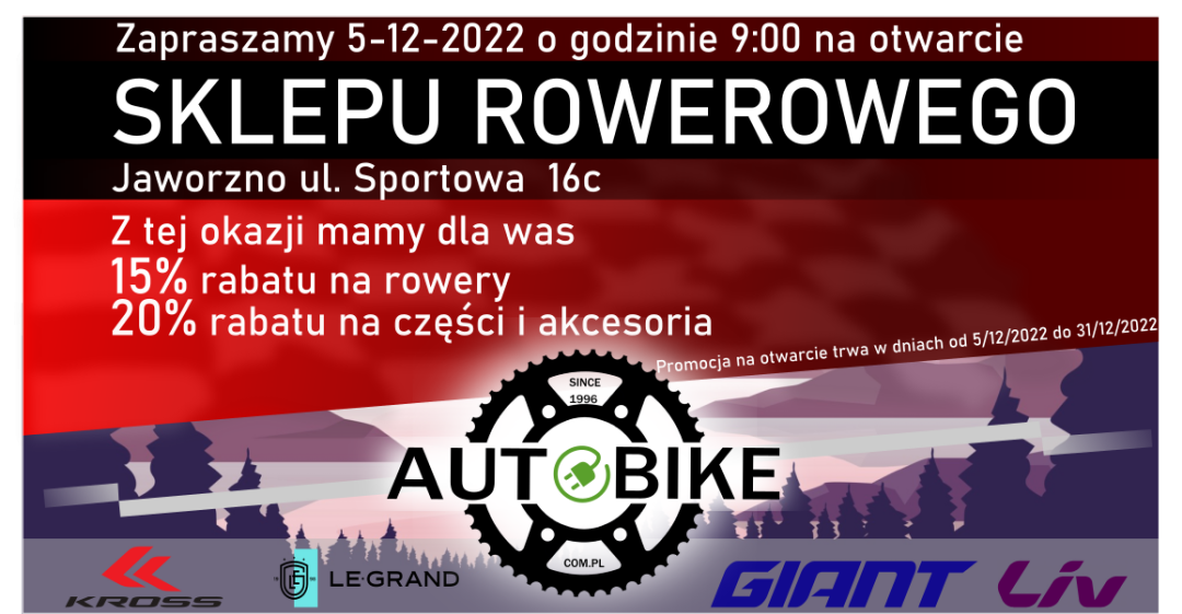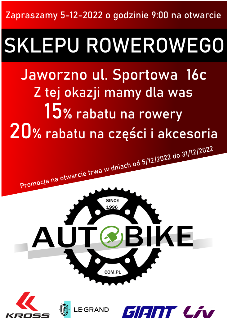 Zapraszamy w dniu 5 grudnia 2022 do nowego salonu rowerowego w Jaworznie przy ulicy Sportowej 16c .
