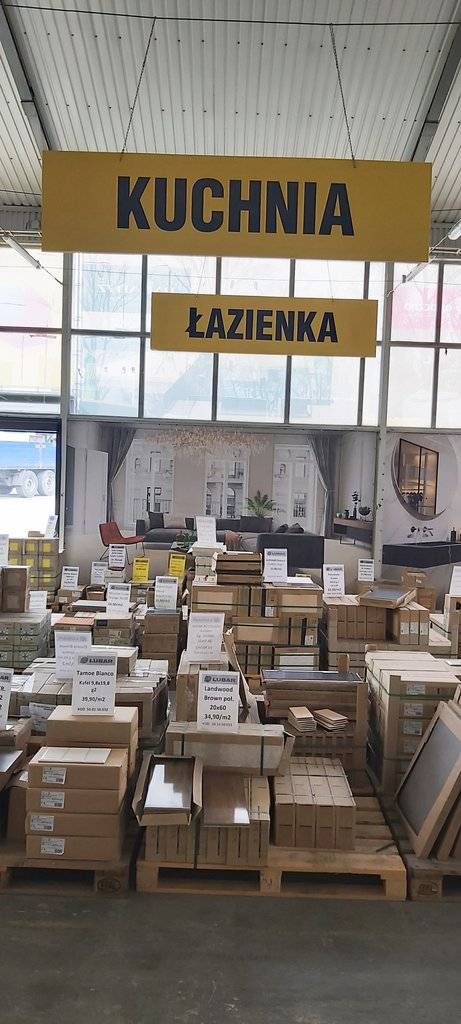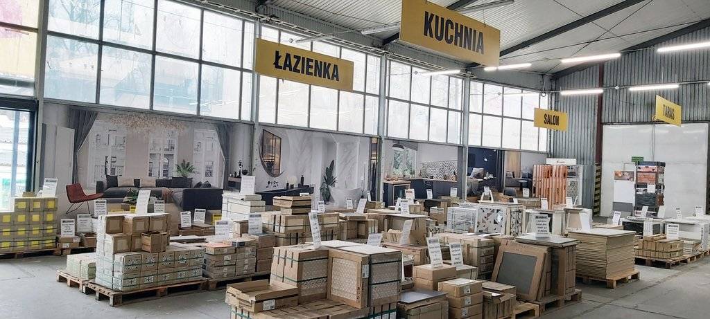 Na powierzchni, która wynosi ok. 500 m 2 , znajdują się płytki ceramiczne i klinkierowe, gres szkliwiony i techniczny oraz terakota . Są to produkty takich marek jak Opoczno, Paradyż i Nowa Gala, a także płytki hiszpańskie, włoskie i niemieckie. Można znaleźć wśród nich: