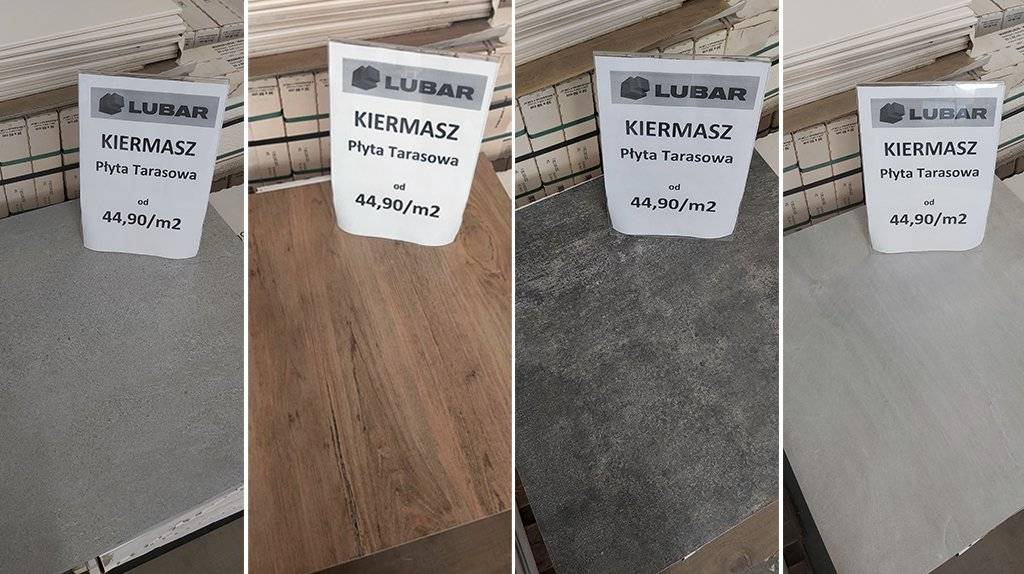 KIERMASZ w outlecie płytek LUBAR (9-10 lipca) obejmuje m.in. płyty tarasowe o grubości 2 cm drugiego gatunku. Ich ceny zaczynają się już od 44,99 zł za m2.[/caption]Z kolei końcówki kolekcji płytek gresowych i ceramicznych, ściennych i podłogowych to ekonomiczne rozwiązanie, które sprawdzi się praktycznie w każdym pomieszczeniu w domu lub mieszkaniu. Można je zastosować do garażu, kotłowni, kuchni, salonu, łazienki czy przedpokoju. Podczas wyprzedaży ich cena będzie zaczynała się od 5,9 zł za m 2 ! Należy jednak pamiętać, że ilość kafli tego typu jest zwykle dostępna w ograniczonych ilościach.
