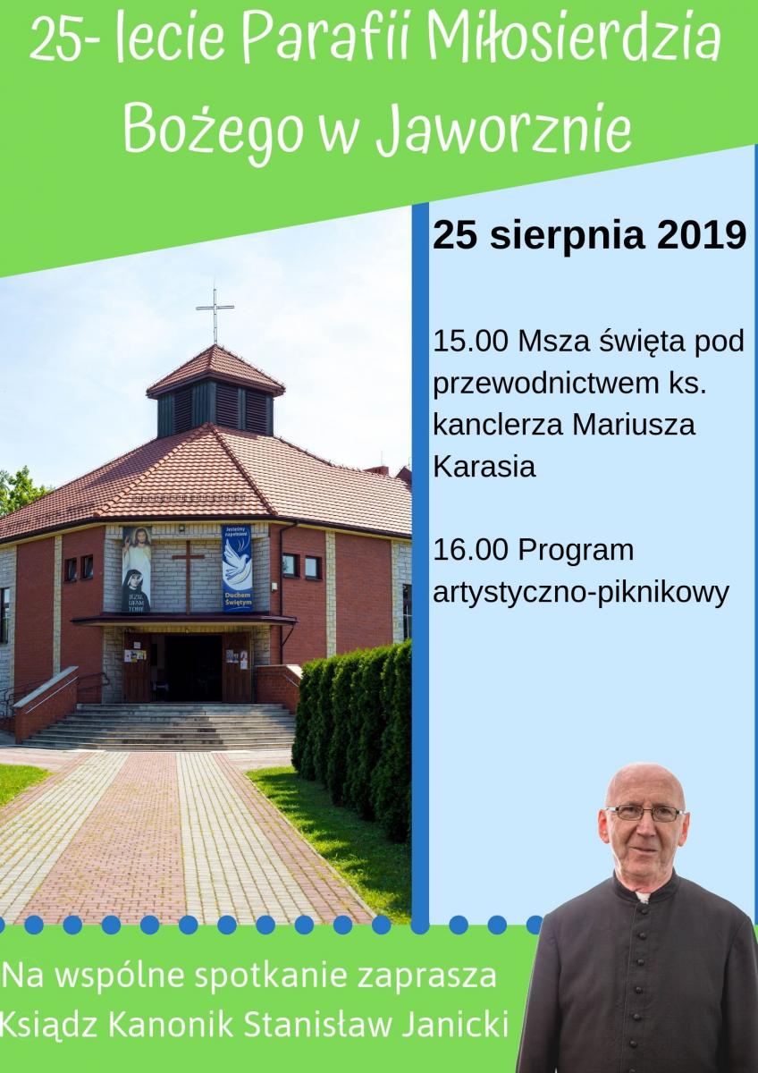 25 sierpnia o godz. 15.00 Parafia Miłosierdzia Bożego w Jaworznie Borach rozpocznie mszą św. uroczyste obchody 25-lecia.