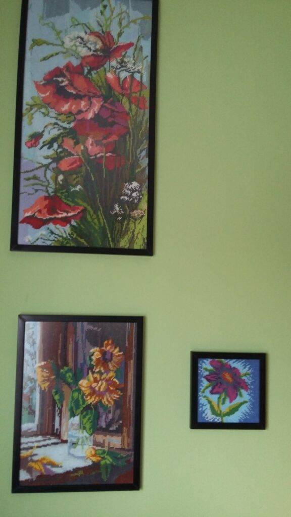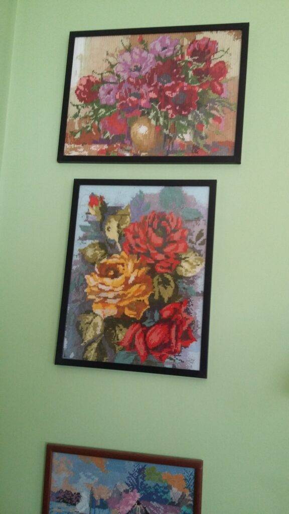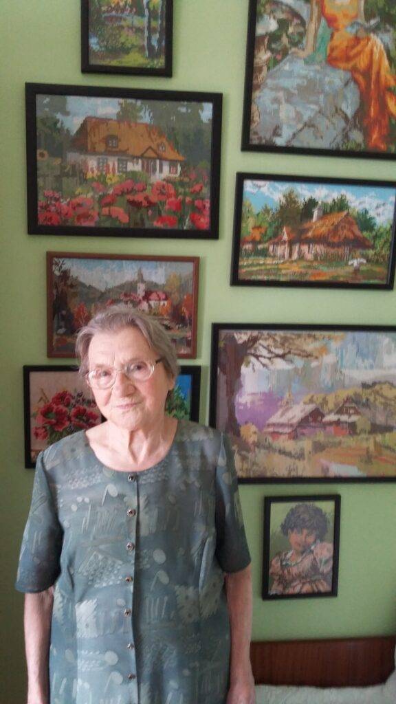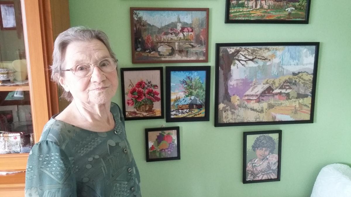 Gdy pani Józefa haftuje to uparcie nad każdą pracą, nie można jej oderwać i z nią rozmawiać, pracuje od początku do zakończenia haftu, bez przerwy. Lubi wszelkie tematy, choć dominuje w nich natura. A! Znalazła się jedna praca – domek w otoczeniu zieleni, która się pani Józefie nie podoba, ale nikt nie wie dlaczego.