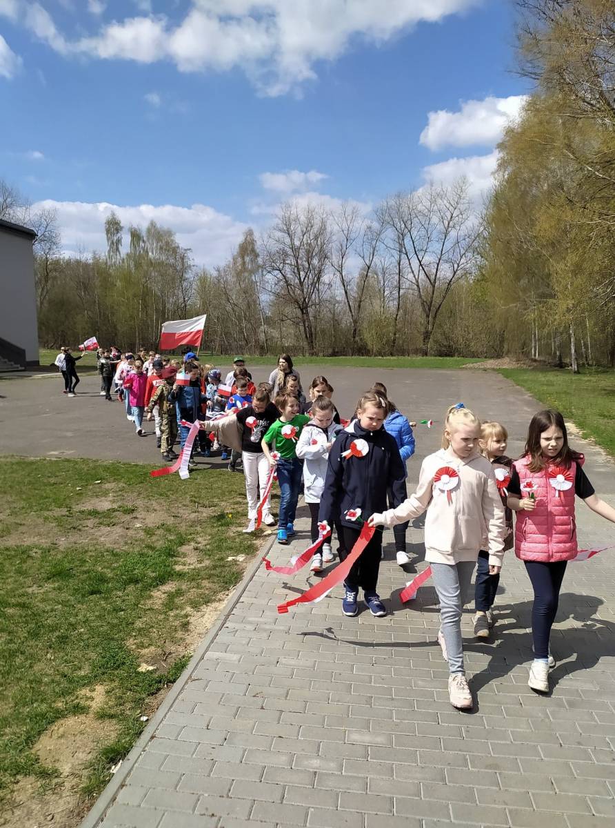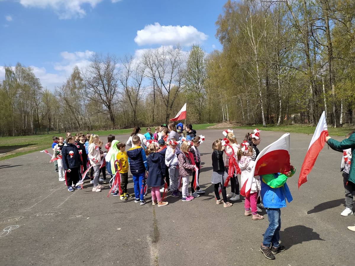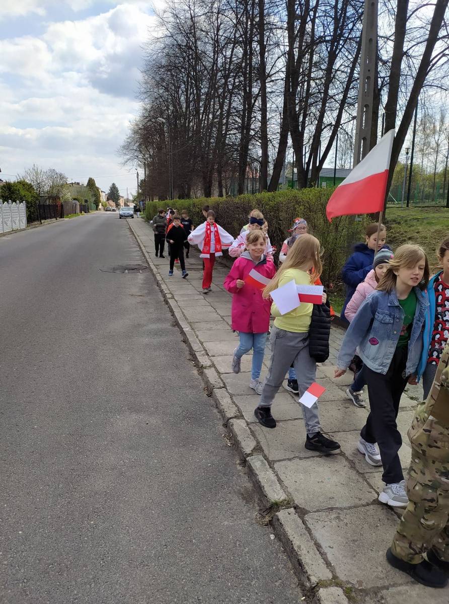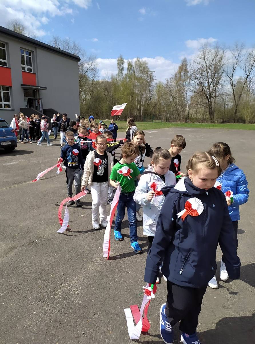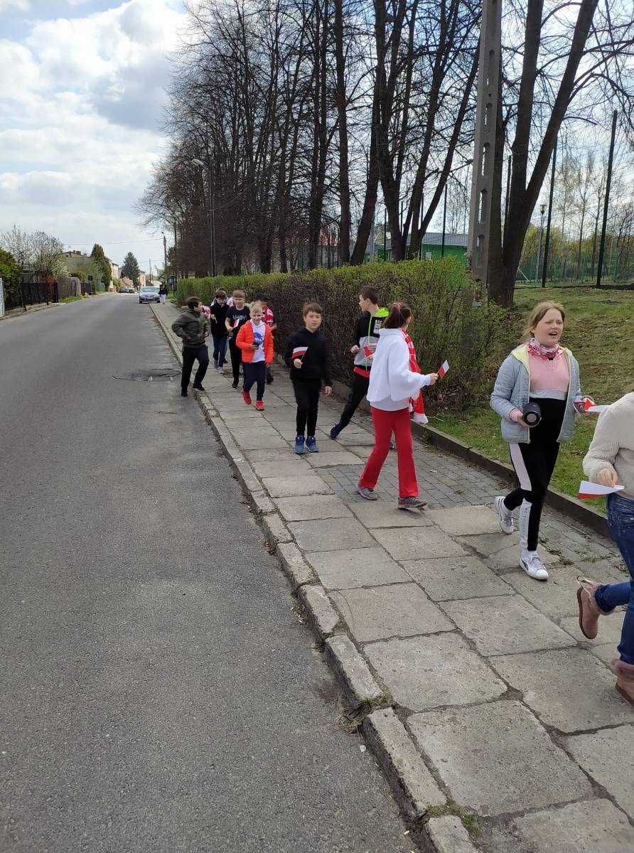 Uczniowie śpiewali pieśni patriotyczne m.in. "Witaj majowa jutrzenko", a napotkanym mieszkańcom dzielnicy rozdawali własnoręcznie wykonane biało - czerwone flagi.