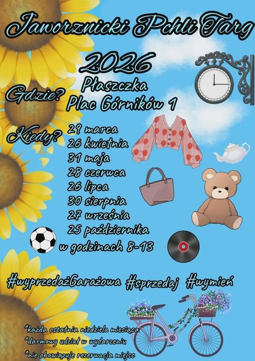 Miłośnicy wyjątkowych przedmiotów i okazji z drugiej ręki znów będą mieli powód do odwiedzenia centrum Jaworzna. Powraca Jaworznicki Pchli Targ pod Płaszczką. W 2026 roku zaplanowano osiem edycji targu. Wszystkie odbędą się w tym samym miejscu – Pod Płaszczką przy ul. Plac Górników 1 w Jaworznie. Wydarzenie tradycyjnie będzie organizowane w każdą ostatnią niedzielę miesiąca, od marca do października, w godzinach od 8:00 do 13:00.