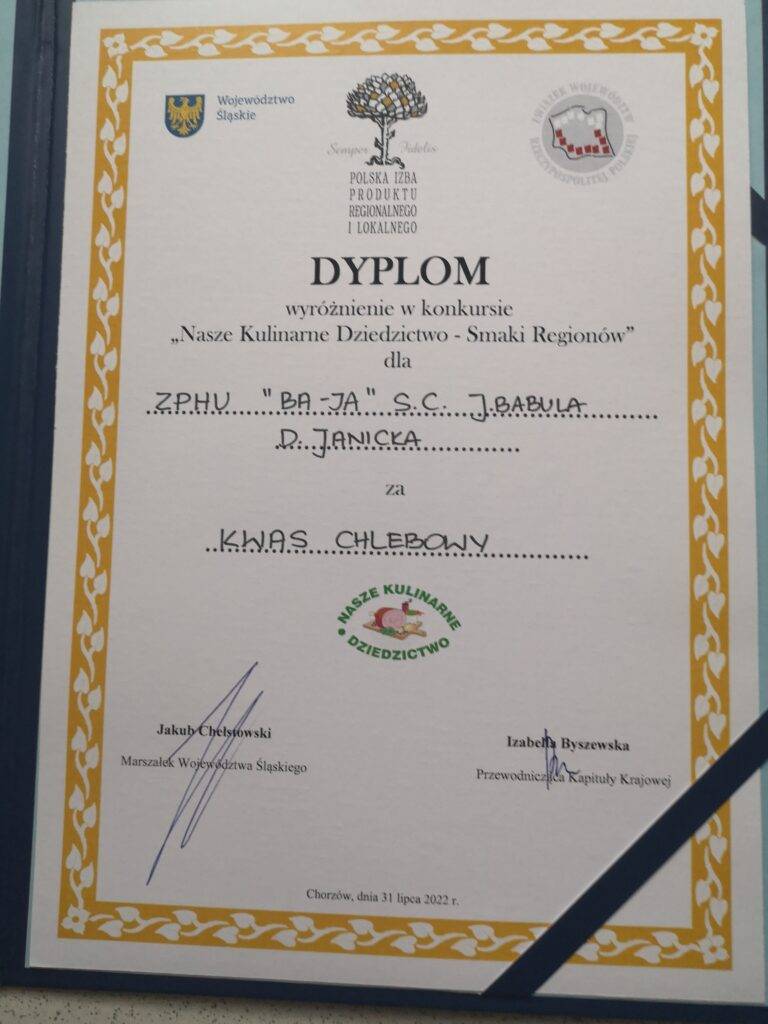 Jaworznicka piekarnia BA-JA została wyróżniona za własnej produkcji kwas chlebowy, który prezentowała w konkursie „Nasze Kulinarne Dziedzictwo – Smaki regionów”. Konkurs zorganizowała 31 lipca w Chorzowie Polska Izba Produktu Regionalnego i Lokalnego