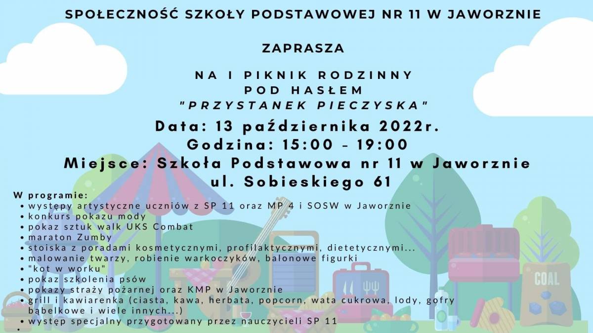Społeczność Szkoły Podstawowej nr 11 w Jaworznie zaprasza na piknik rodzinny, który odbędzie się pod hasłem "Przystanek Pieczyska".