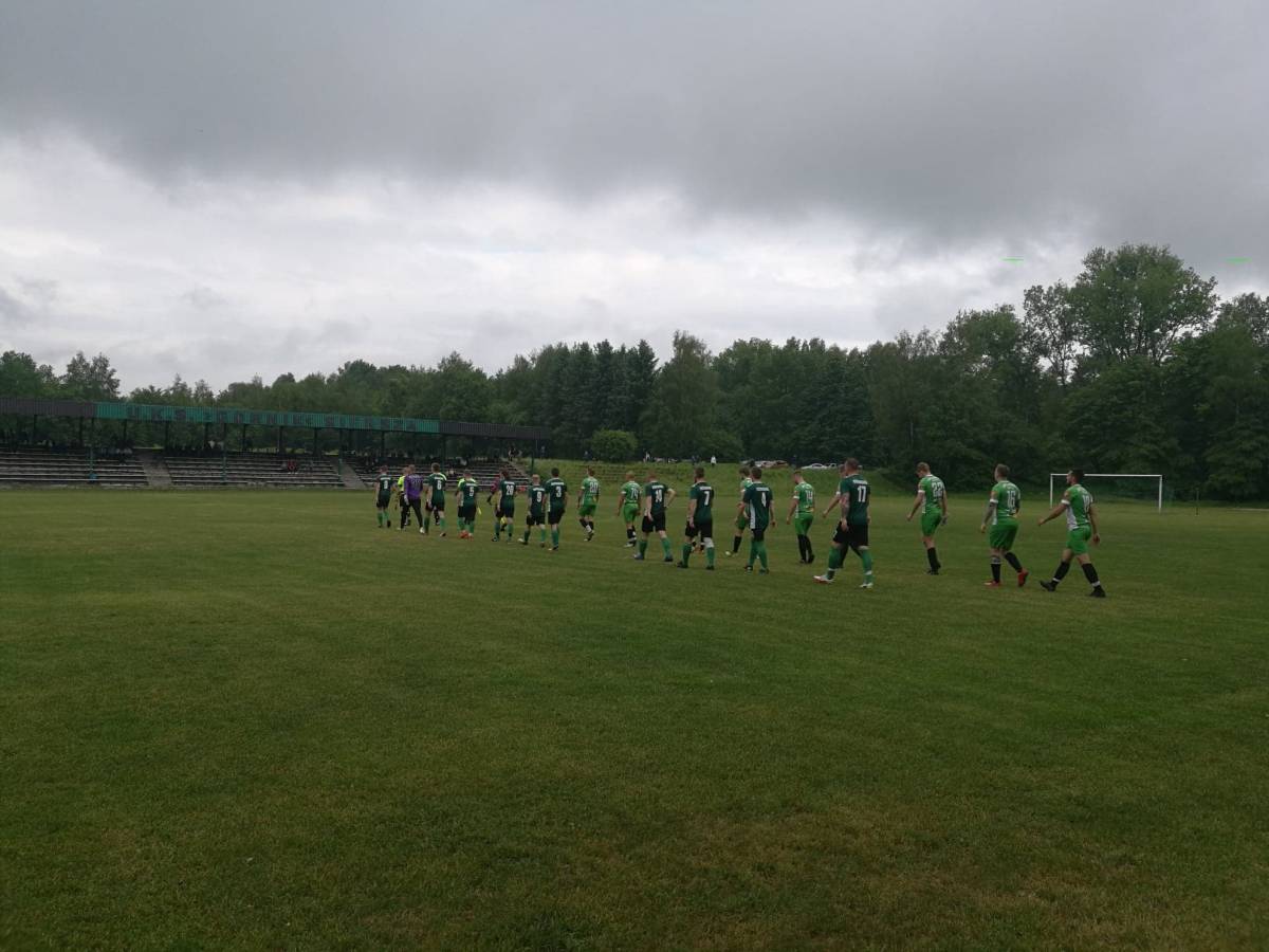 Z kolei trener Szymon Pieczka z różnych przyczyn nie mógł liczyć na kilku czołowych zawodników jak Mariusz Biel, Dorian Prytko, Piotr Woronowicz, Marcin Fijołek, Patryk Jochymek, Maciej Ciołczyk, zaś Dariusz Boś i Marcin Psioda wyszli na boisko na własną odpowiedzialność z nie do końca wyleczonymi kontuzjami. W tej sytuacji trener Pieczka zasiadł na ławce rezerwowych jako trener oraz zawodnik. Padający przed rozpoczęciem zawodów deszcz sprawił, że warunki dla obydwu drużyn, a szczególnie dla bramkarzy nie były łatwe. Śliska piłka potrafiła sprawiać figle zawodnikom obydwu teamów. Jednak sam mecz mógł się podobać. Trzy bramki, parady bramkarzy oraz walka do ostatnich sekund spotkania mogły zadowolić najbardziej wybrednych koneserów „kopanej”. To był prawdziwy piłkarski rollercoaster. Goście z Ciężkowic w pierwszej połowie byli bliscy kilkakrotnie zdobycia bramki. Miejscowi nie pozostawali dłużni na czym tylko zyskało widowisko piłkarskie.