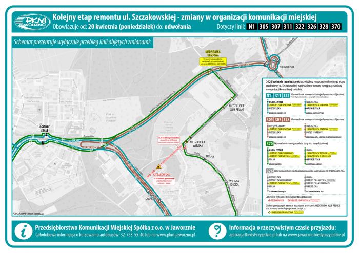 Korekty dotyczą nocnej linii N1 oraz linii dziennych: 305, 307, 311, 322, 326, 328 i 370. W większości przypadków oznacza to wprowadzenie objazdów, a także zmiany w lokalizacji przystanków. Część z nich zostanie tymczasowo wyłączona z użytkowania.