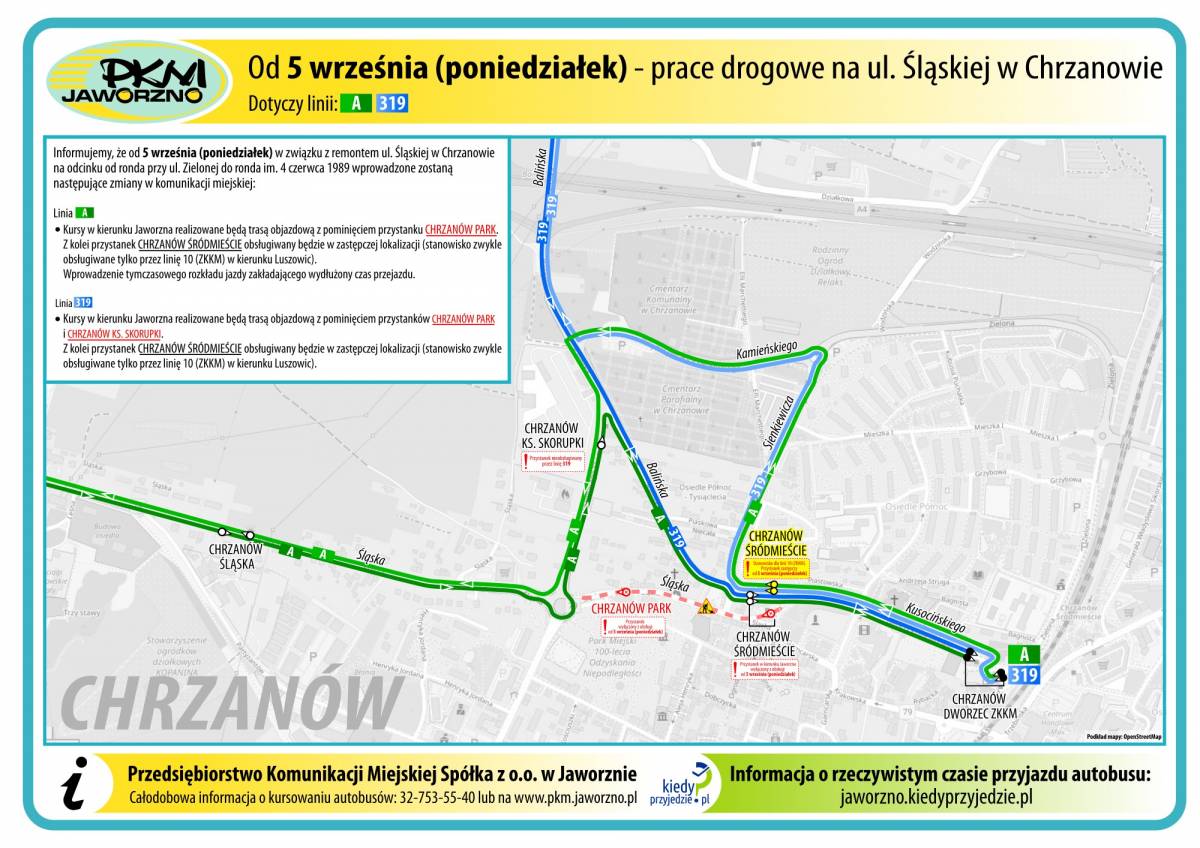 Zmiany dotyczną linii 319 oraz A, spowodowane są remontem ul. Śląskiej w Chrzanowie.