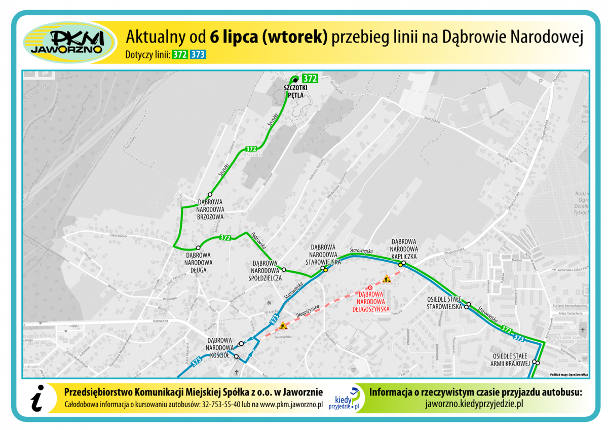 Zmiana dotyczy linii 372 i 373, spowodowana jest budową kanalizacji w Dąbrowie Narodowej.