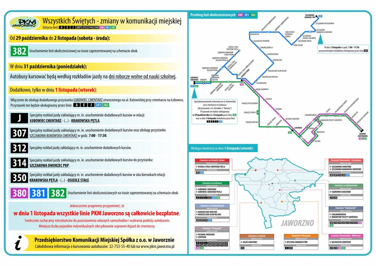 Zmiana przewidziana jest na dni od 29 października do 2 listopada, a dotyczyć będzie linii A, E, J, 307, 312, 314, 350. Uruchomione zostaną linie 380, 381 oraz 382.