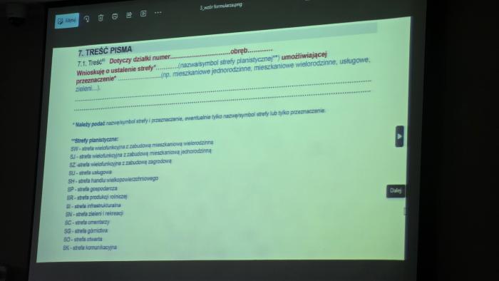Podczas spotkania urzędnicy oraz projektanci przedstawili prezentację wyjaśniającą, czym jest plan ogólny i jakie będzie miał znaczenie dla przyszłego rozwoju miasta. Plan ogólny to dokument planistyczny uchwalany dla całego miasta, będący aktem prawa miejscowego. Jego zapisy będą wiążące dla decyzji o warunkach zabudowy oraz decyzji dotyczących lokalizacji inwestycji celu publicznego.