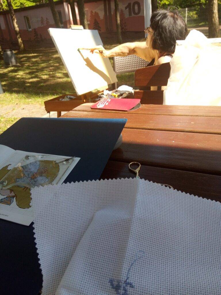 Pozdrawiamy również naszych przyjaciół ze Stowarzyszenia Grupa Plastyczna Dąbrowa -Henię Orzeł i Janka Artymowicza, którzy zechcieli do nas dołączyć w tych pięknych okolicznościach przyrody.