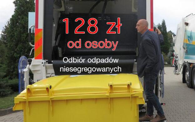 Wzrośnie również opłata za odbiór odpadów niesegregowanych - z 44 do aż 128 zł od osoby - przewidzianej w ustawie czterokrotności ceny za odbiór śmieci segregowanych.
