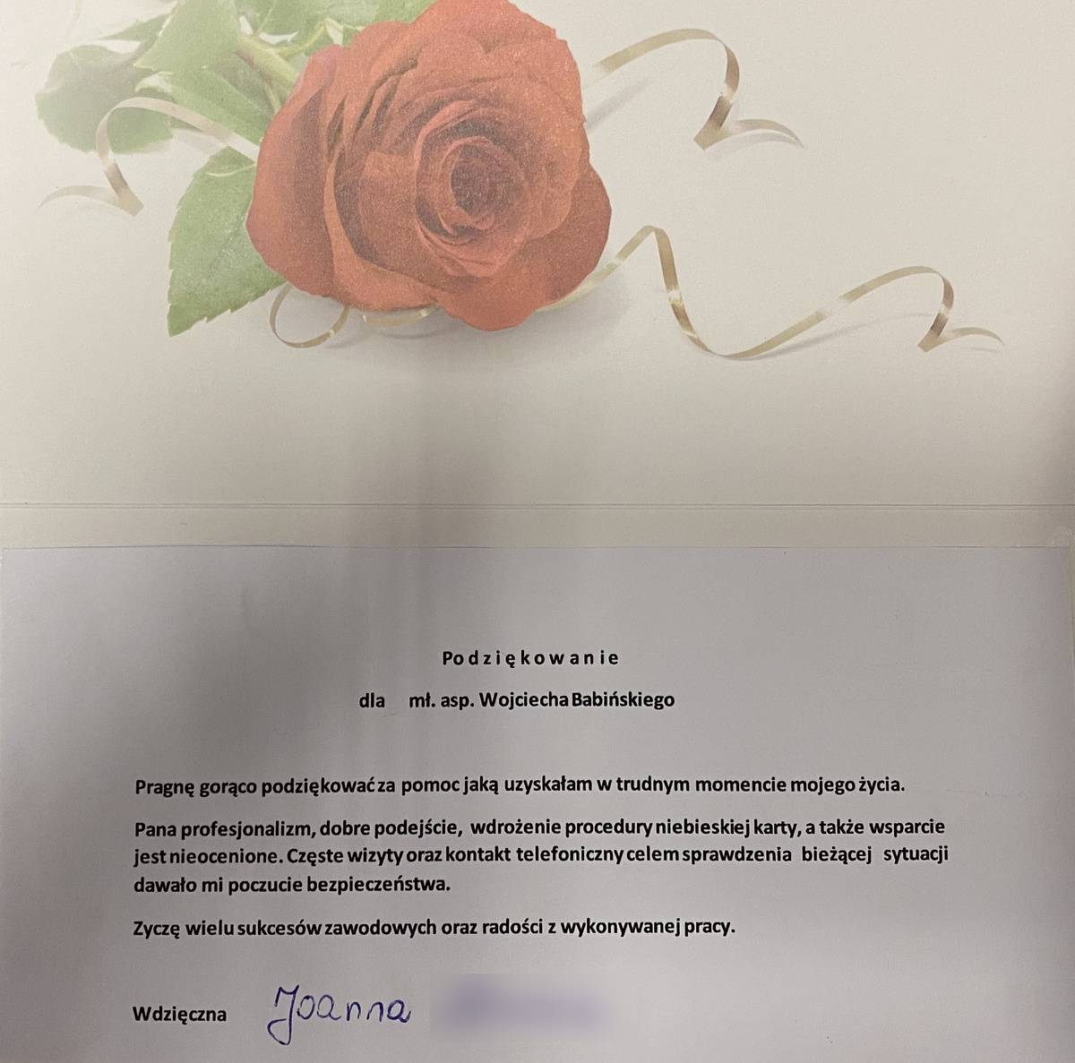 Pani Joanna, mieszkanka Jaworzna, podziękowała w ten sposób swojemu dzielnicowemu, który okazał jej wsparcie i pomoc w trudnym dla niej czasie.