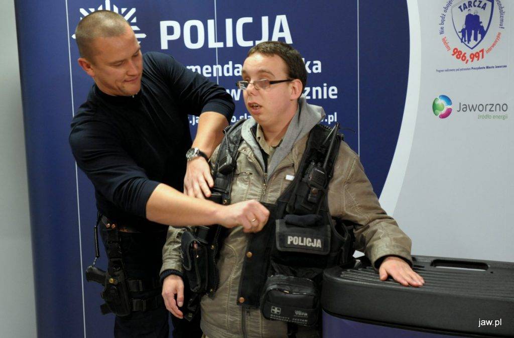 Chłopiec mógł także poznać techniki kryminalistyczne i na pamiątkę odcisnąć swoje linie papilarne na kartce. Wiele radości Gabrysiowi sprawiło przymierzenie kamizelki z wyposażeniem indywidualnym policjanta.