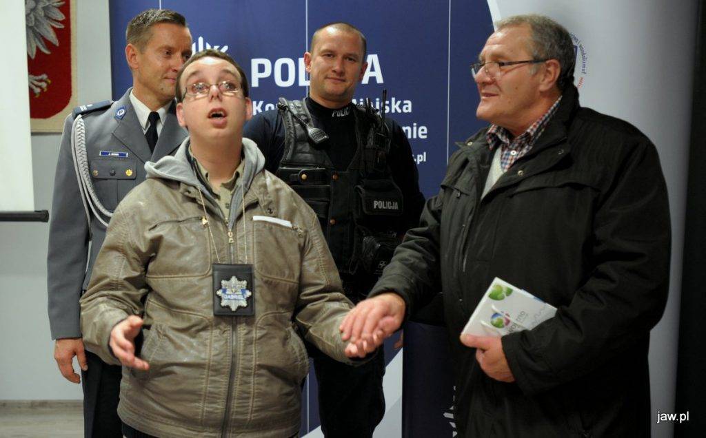 Największa niespodzianka czekała chłopca na koniec. Gabryś otrzymał od podinspektora Jacka Sowy odznakę policyjną i tym samym stał się oficjalnym przyjacielem jaworznickiej policji.