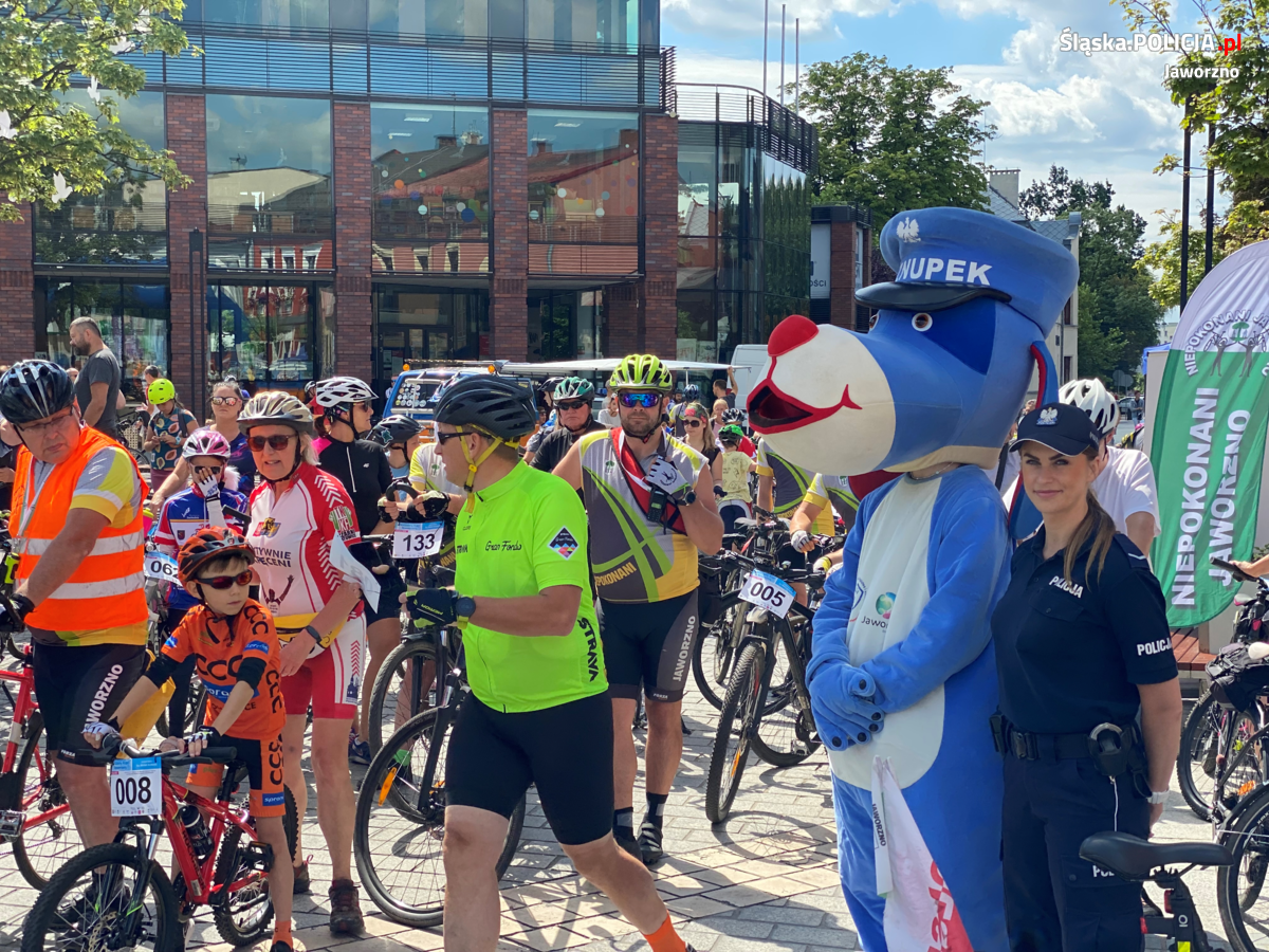 Wiemy, że organizowany przez Parafię św. Wojciecha i Katarzyny oraz Radnego Rady Miejskiej w Jaworznie Pana Dawida Domagalskiego „Rodzinny Rajd Rowerowy” ma wielu wiernych fanów. W wydarzeniu wzięło udział  ponad 150 miłośników dwóch kółek, którzy przybyli, aby zdrowo i aktywnie spędzić sobotnie przedpołudnie. Dlatego na tej imprezie nie mogło zabraknąć jaworznickich policjantów. Patronem duchowym rajdu był św. Michał Archanioł, który jest również patronem Policjantów. Organizatorzy w trakcie przemówienia podziękowali jaworznickiej policji za cykliczną pomoc w zabezpieczaniu przejazdu rowerzystów i poprosili o symboliczną minutę ciszy za poległych na służbie Policjantów. Rajd rowerowy to nie tylko sposób na spędzenie czasu to też okazja dla policjantów do promowania bezpieczeństwa w ruchu drogowym. Mundurowi rozdawali odblaski i policyjne gadżety oraz przeprowadzili konkurs z nagrodami. Duże zainteresowanie wzbudziła maskotka śląskiej policji "Sznupek", który chętnie pozował do zdjęć z uczestnikami imprezy.