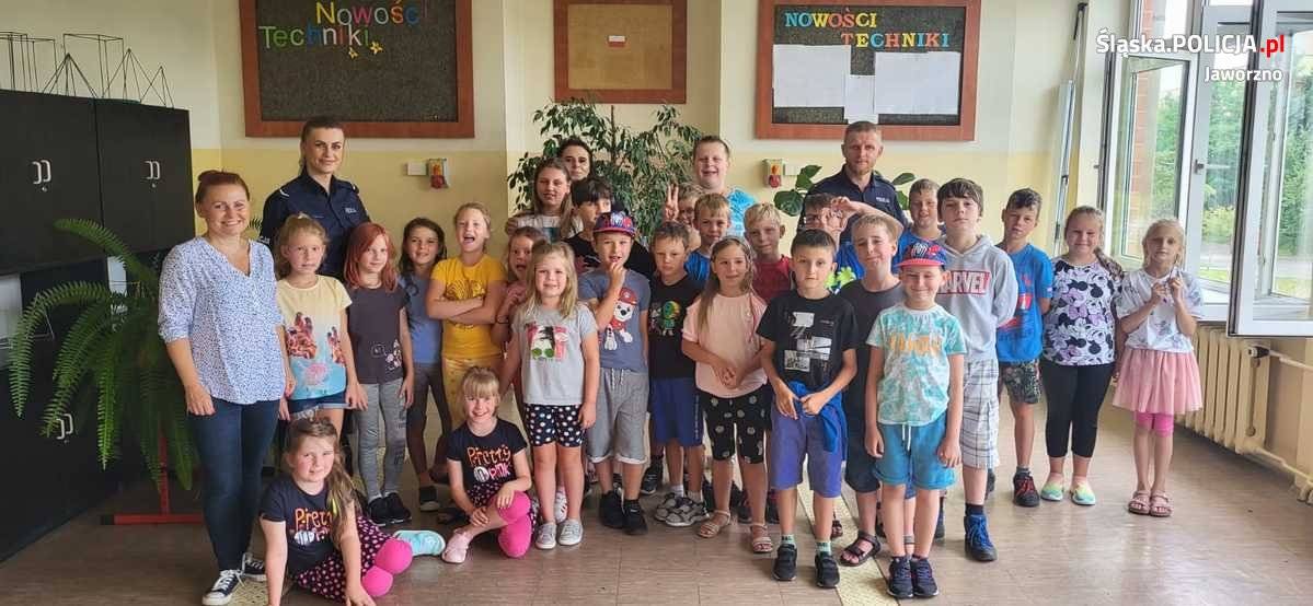 Wakacje trwają już w najlepsze, z czego w największym stopniu korzystają najmłodsi mieszkańcy Jaworzna. Działające na terenie miasta półkolonie prowadzą swoją działalność, która stanowiła atrakcyjną formę zorganizowanego dla dzieci i młodzieży letniego wypoczynku. W ramach akcji „Kręci mnie bezpieczeństwo nad wodą” i „Bezpieczne wakacje” jaworzniccy policjanci odwiedzają te placówki i „wkręcają” w bezpieczeństwo oraz przypominają wszystkim o zasadach prawidłowego zachowania w czasie letniego wypoczynku.