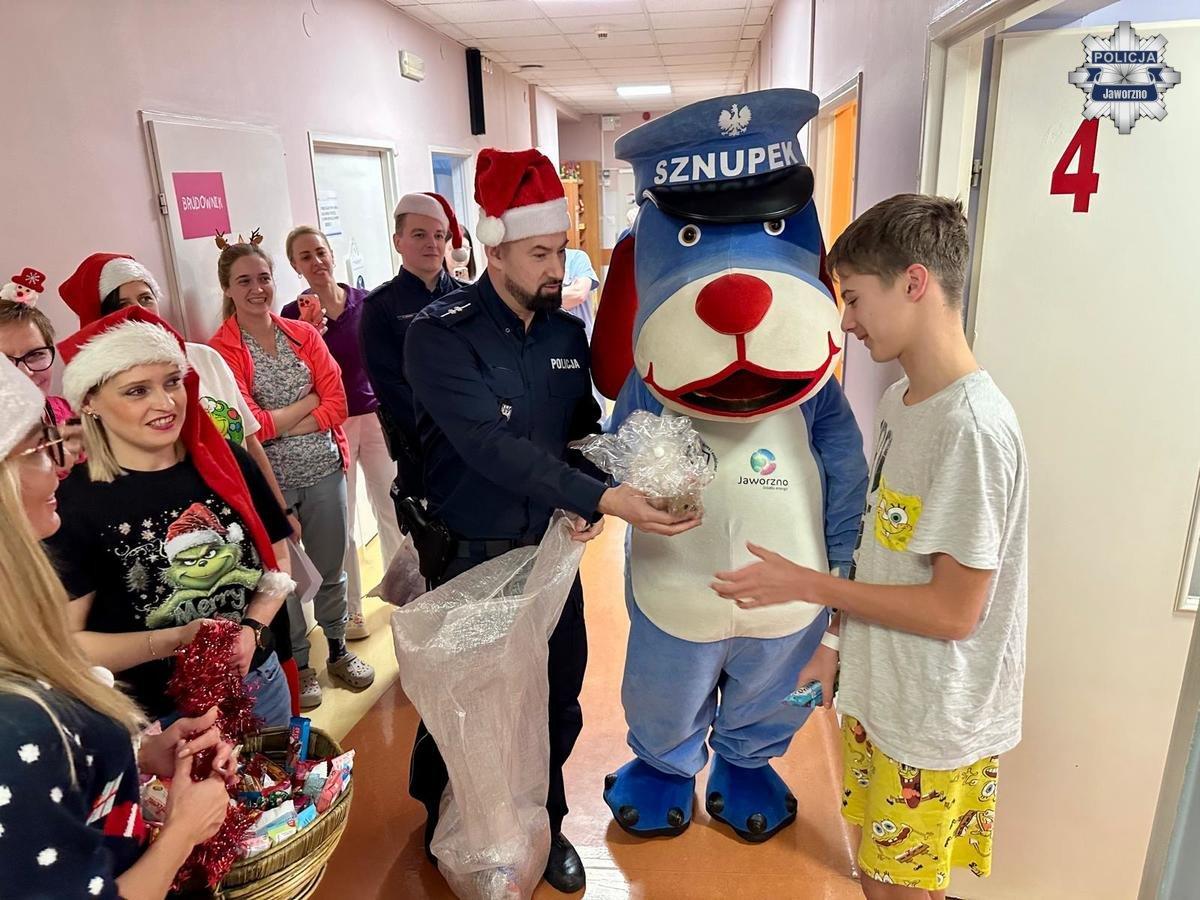 Na oddziałach dziecięcych jaworznickiego szpitala tego dnia było wyjątkowo dużo uśmiechów. Pojawili się tam policjanci z Komendy Miejskiej Policji w Jaworznie, przebrani za Mikołajów, razem z maskotką Sznupkiem. Przynieśli prezenty, trochę świątecznej atmosfery i chwilę wytchnienia dla małych pacjentów. Dla wielu dzieci, które na co dzień zmagają się z chorobą, była to wizyta, którą zapamiętają na długo.