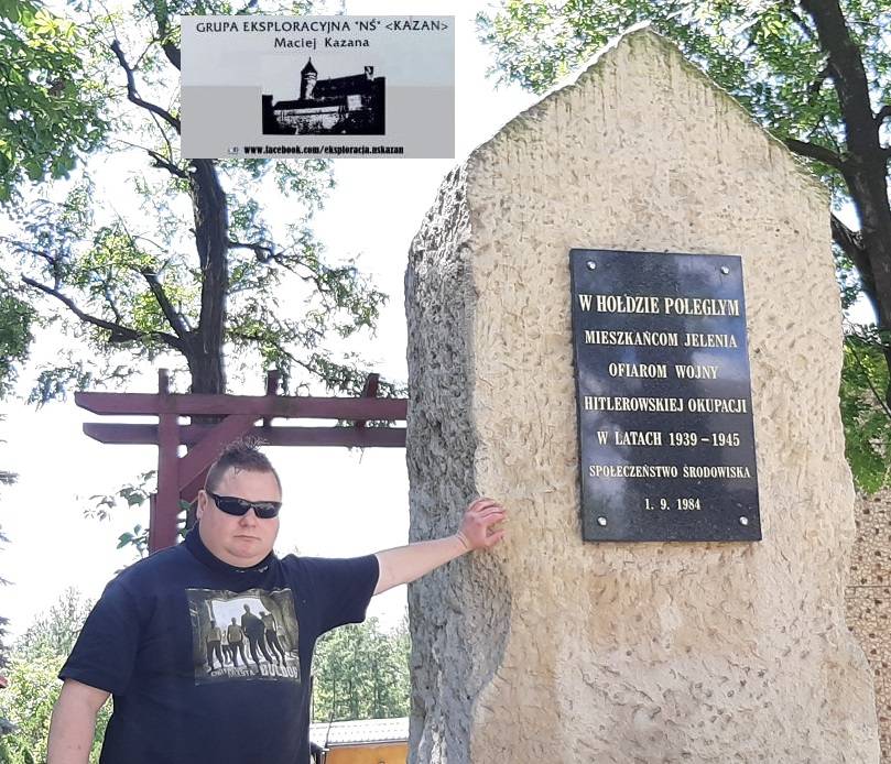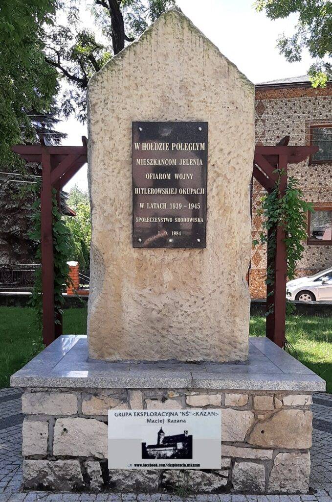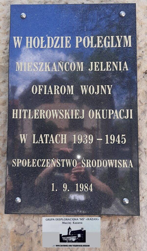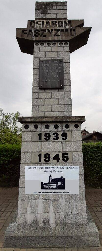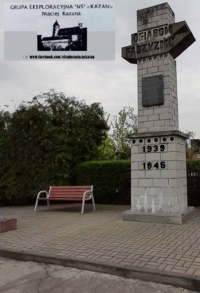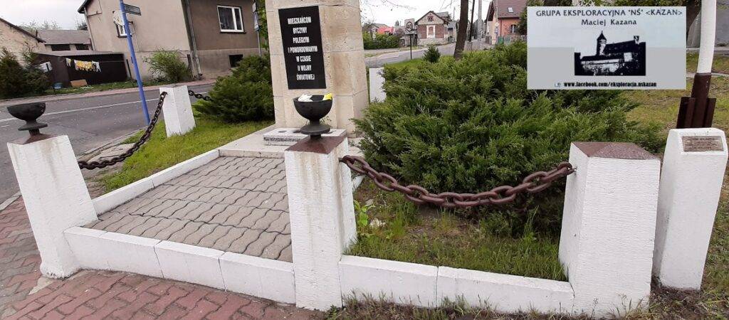 kościoła pw. Narodzin Matki Boskiej Anielskiej, przy ul. Strażackiej. Napis na pomniku mówi o 42 obywatelach dzielnicy zabitych przez niemieckiego okupanta w latach 1939-1945.