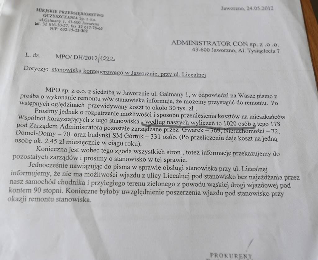 Problemu nie ma końca, a chodzi tu o pieniądze na inwestycje. Do tej pory MPO w niektórych miejscach inwestowało w stanowiska kontenerowe. Teraz gdy przetargi podpisuje się na rok, firma nie zgodzi się na poniesienie takiego kosztu.