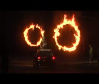 Przysłowiową „wisienką na torcie” były ewolucje z wykorzystaniem pirotechniki. Mogliśmy zobaczyć między innymi pokaz kontrolowanego dachowania przy wybuchu ognia. Najciekawsza wydawała się scena, kiedy jeden z kaskaderów położył się na masce samochodu, został oblany benzyną, a wiozący go samochód przejechał przez ścianę ognia.