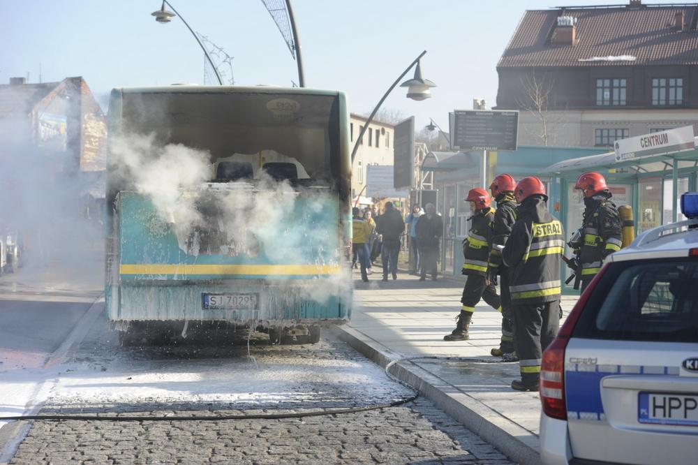 Około godziny 14:00 na głównym przystanku na wysokości Hali Widowiskowo-Sportowej zapalił się autobus PKM Jaworzno. Zapaliła się komora silnika. Na miejscu pojawiły się trzy zastępy straży pożarnej, które szybko ugasiły ogień przy użyciu ciężkiej piany gaśniczej. Na szczęście w pożarze nikt nie ucierpiał. Pasażerowie autobusu ewakuowali się z niego jeszcze przed przyjazdem straży. Wstępnie straty oszacowano na około 50 tys. zł. Na chwilę obecną nie jest jeszcze znana przyczyna pożaru.