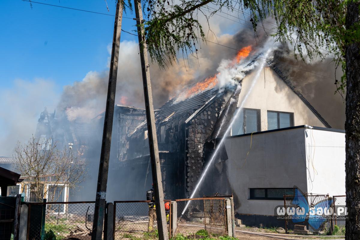 Pożar domu jednorodzinnego przy ulicy Prusa w Jaworznie. Na miejscu pracują już zastępy straży pożarnej.