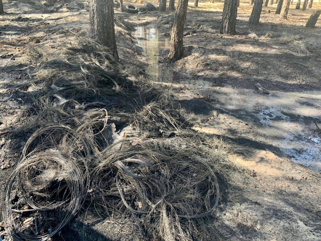 Podczas tego zdarzenia ogień w kilku miejscach zajął drzewa, trawy, pustostan, a także stare opony i kable.