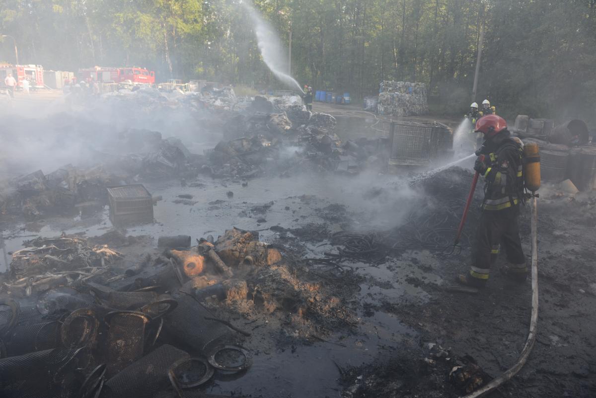 Zapaliły się tworzywa sztuczne, w tym plastik i beczki z przepalonym olejem. Na miejscu pojawiło się 12 zastępów straży pożarnej z Jaworzna, Mysłowic i Sosnowca. W akcji gaśniczej trwające ponad 3 godz. wzięło udział ponad 40 strażaków oraz samolot Dromader, który zrzucił wodę, ponieważ pożar przeniósł się na tereny leśne.