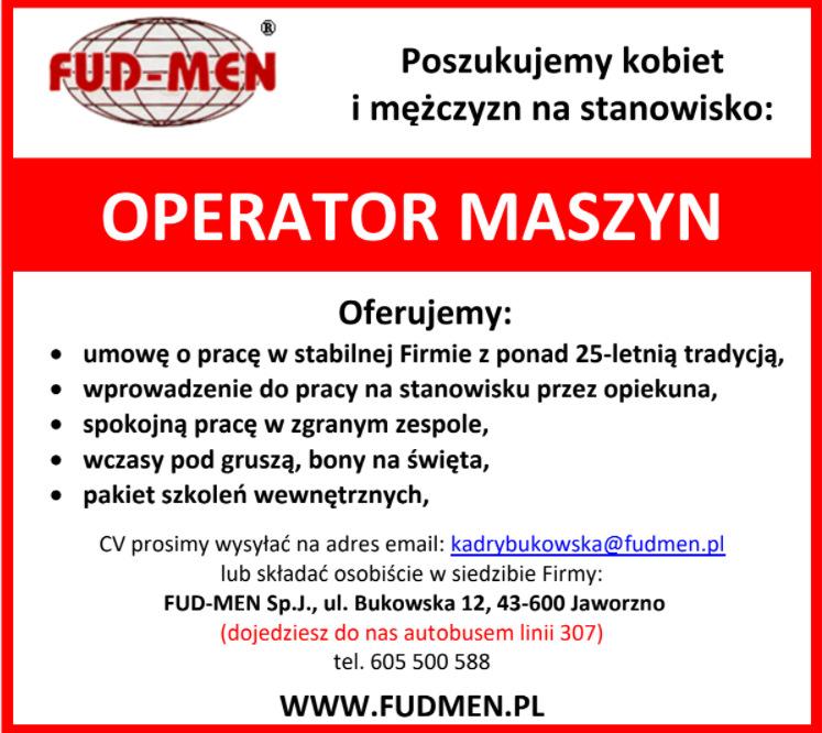 FUD-MEN Sp.J., ul. Bukowska 12, 43-600 Jaworzno (dojedziesz do nas autobusem linii 307) tel. 605 500 588