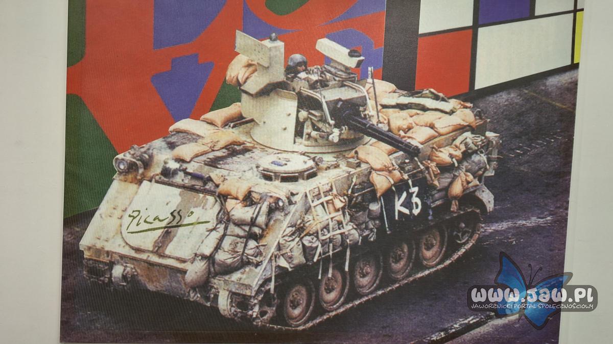 Autor jest znanym pacyfistą i, jak o nim pisują, „krytykiem wszelkich konfliktów zbrojnych”. Składają się na wystawę serie obrazów i instalacji. To prace niezwykle zaskakujące, nietuzinkowe, dające do myślenia. Obojętnie obok nich przejść z pewnością nie można.
