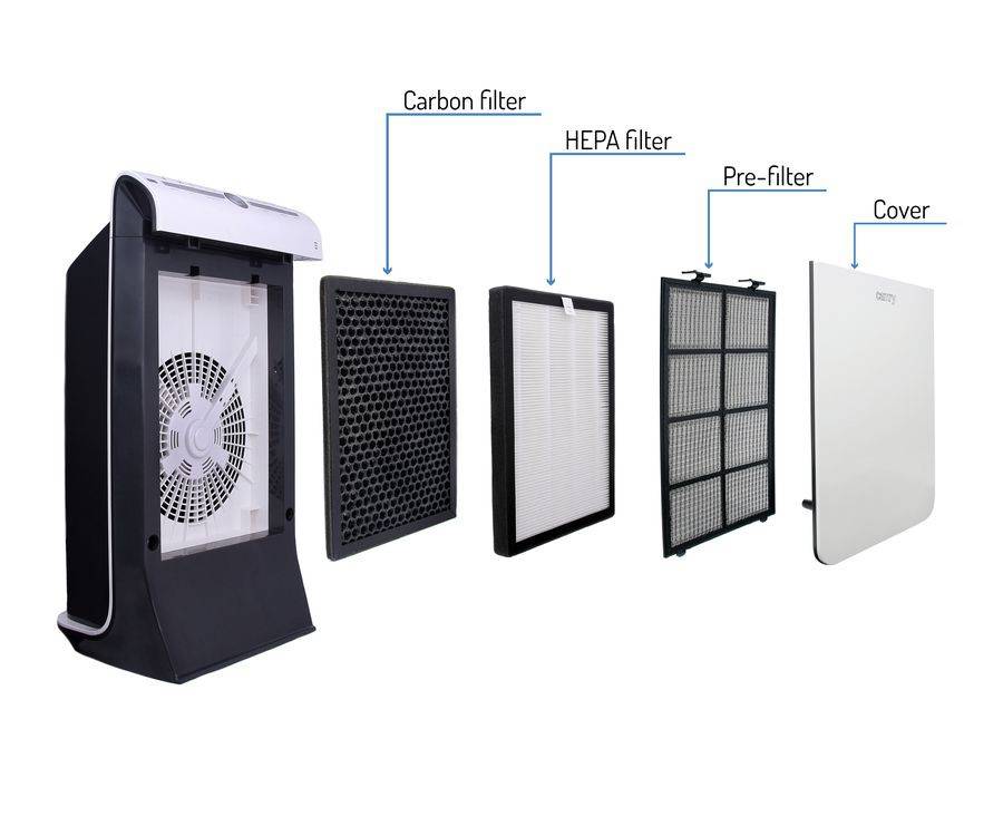 Typowy oczyszczacz powietrza to urządzenie, które wyposażone jest w szereg filtrów. Najczęściej są to 3 różne filtry, o ściśle określonych zadaniach. I tak oczyszczacz za pomocą wytworzonego ciśnienia zwrotnego, wciąga powietrze wewnątrz urządzenia (najczęściej w oparciu o pracę stosownego wentylatora), a następnie przeprowadza je przez wszystkie filtry i wypuszcza z drugiej strony, znacznie czystsze.